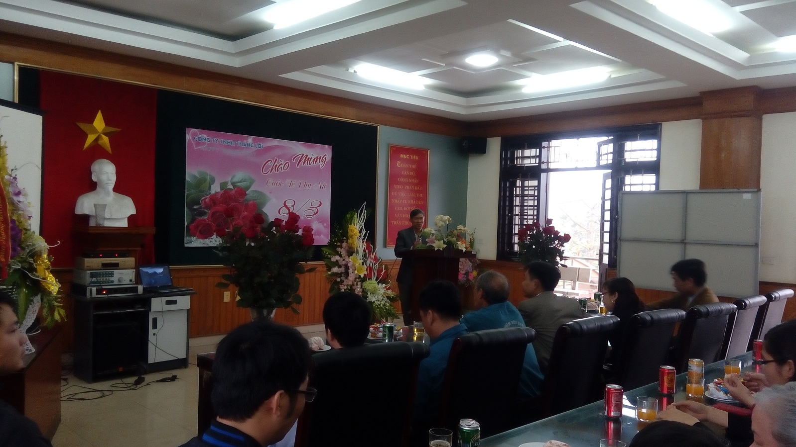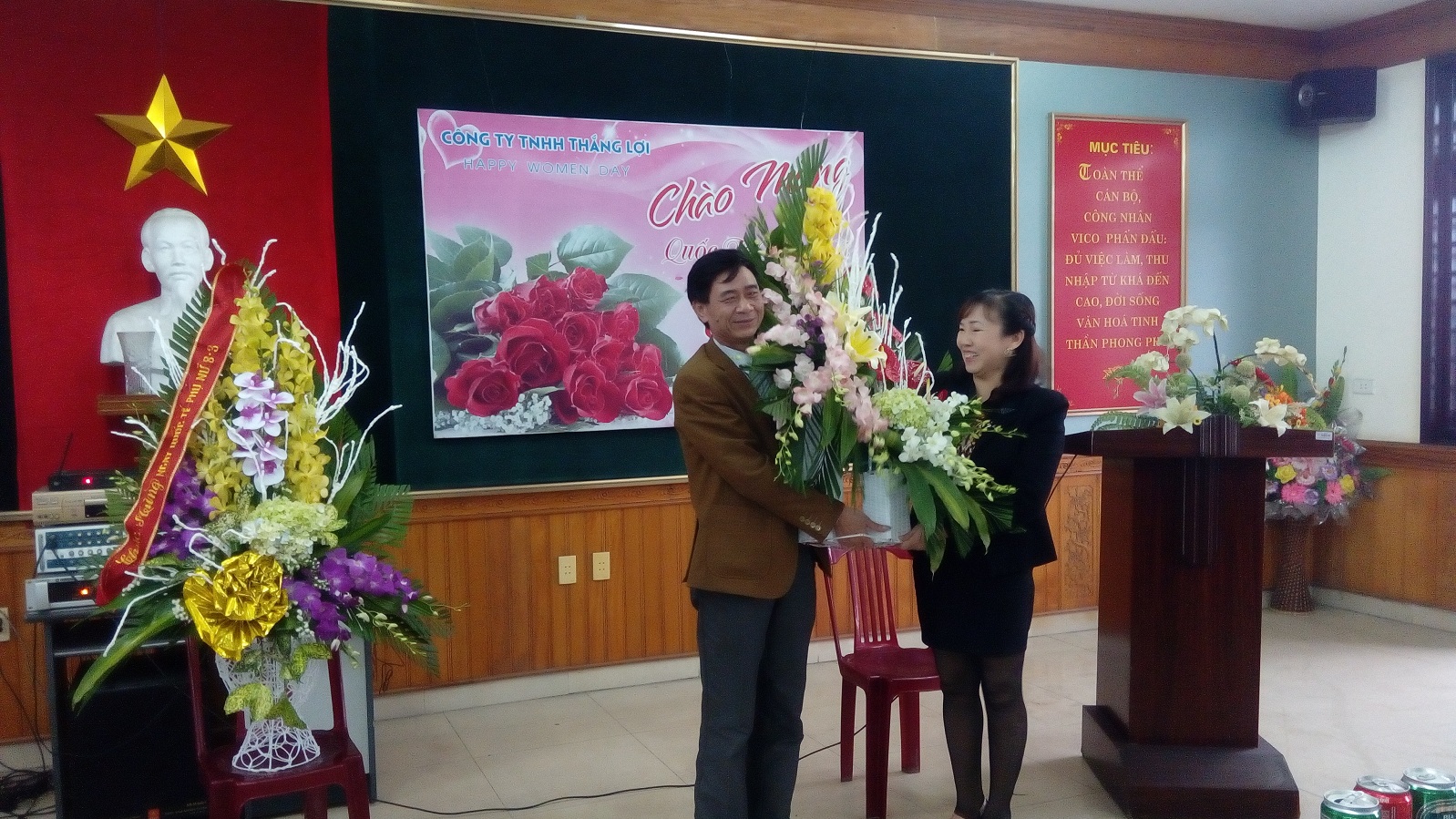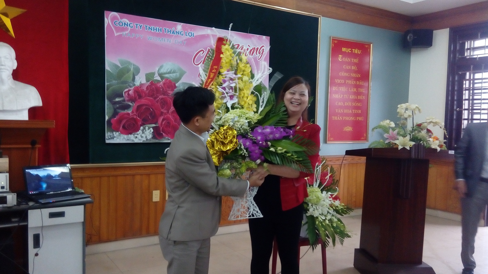 Đồng chí Phó giám đốc thay mặt ban lãnh đạo công ty lên tặng hoa và gửi tới những lời chúc tốt đẹp nhất nhân dịp 8/3