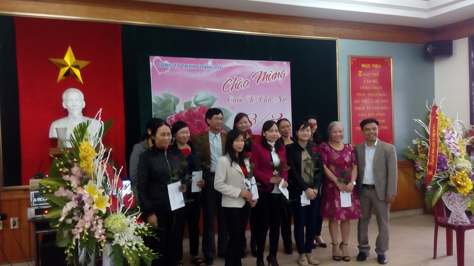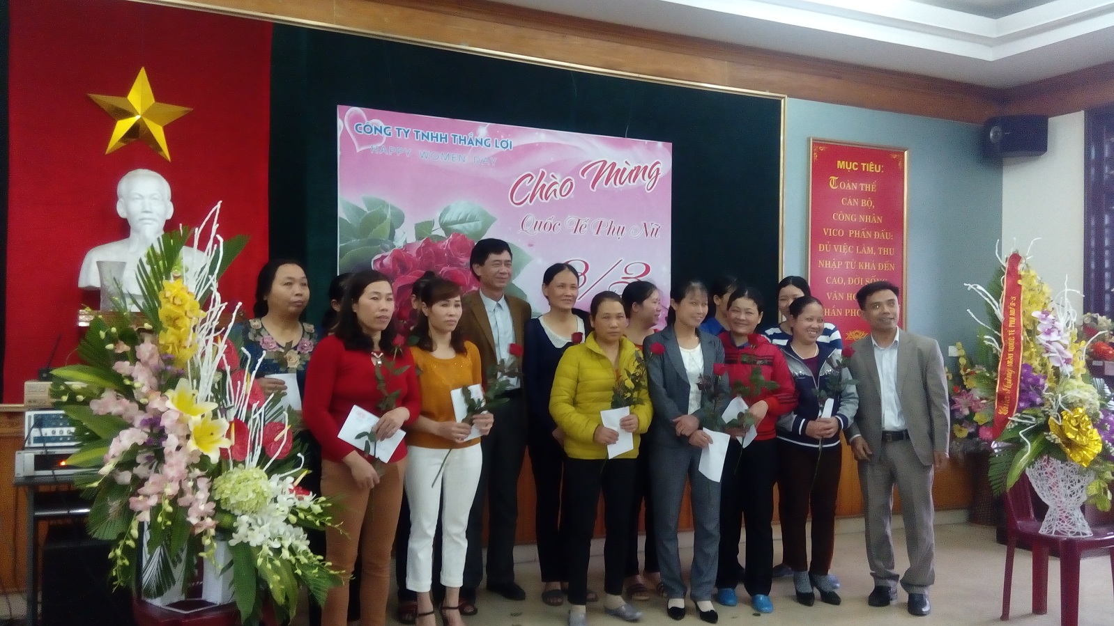 "Công ty TNHH Thắng Lợi xin gửi tới toàn thể các bà, các mẹ, các chị em những lời chúc và những bông hồng tươi đẹp nhất! Cảm ơn 1 nửa thế giới đã luôn kề bên và là chỗ dựa vững chắc nhất cho mọi thành công của thời đại - đã qua 8/3, nhưng những dư âm của nó hẳn chưa tắt và sẽ mãi mãi luôn được cất giấu trong trái tim, thầm cảm ơn và yêu thương sâu sắc!"